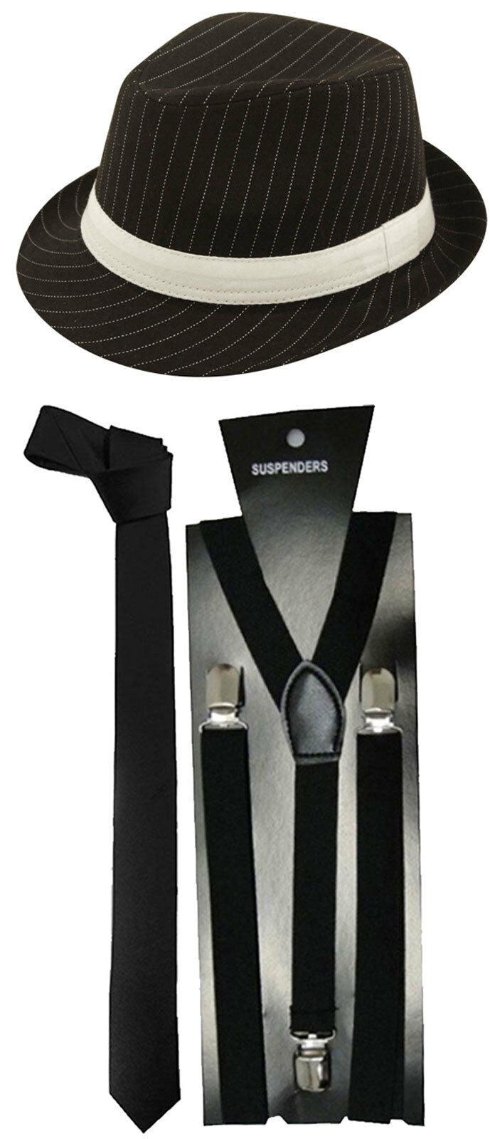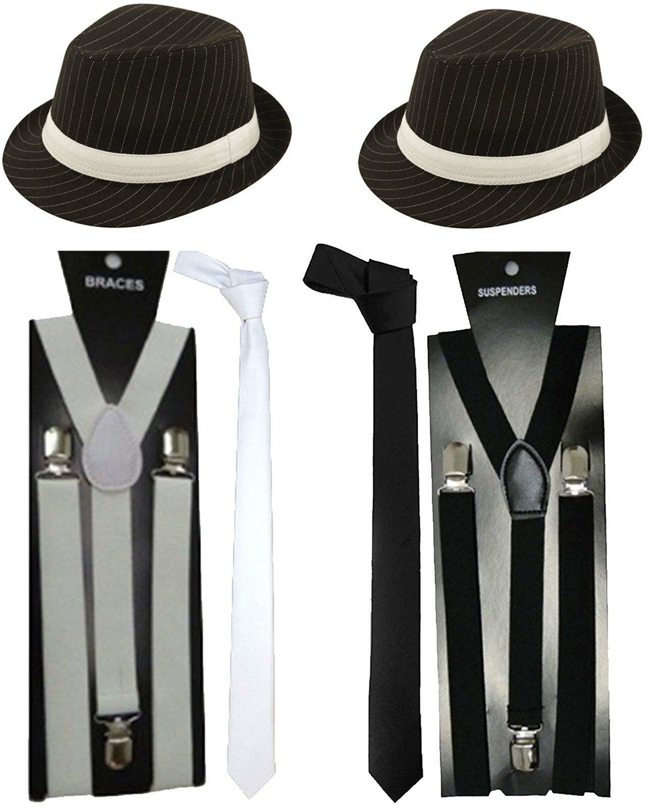 Plain White Black Men’s Gangster Hat Braces Tie Roaring Pimp Fancy Outfit