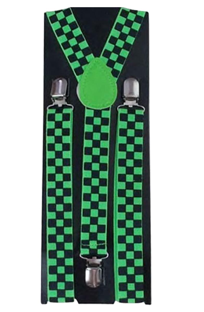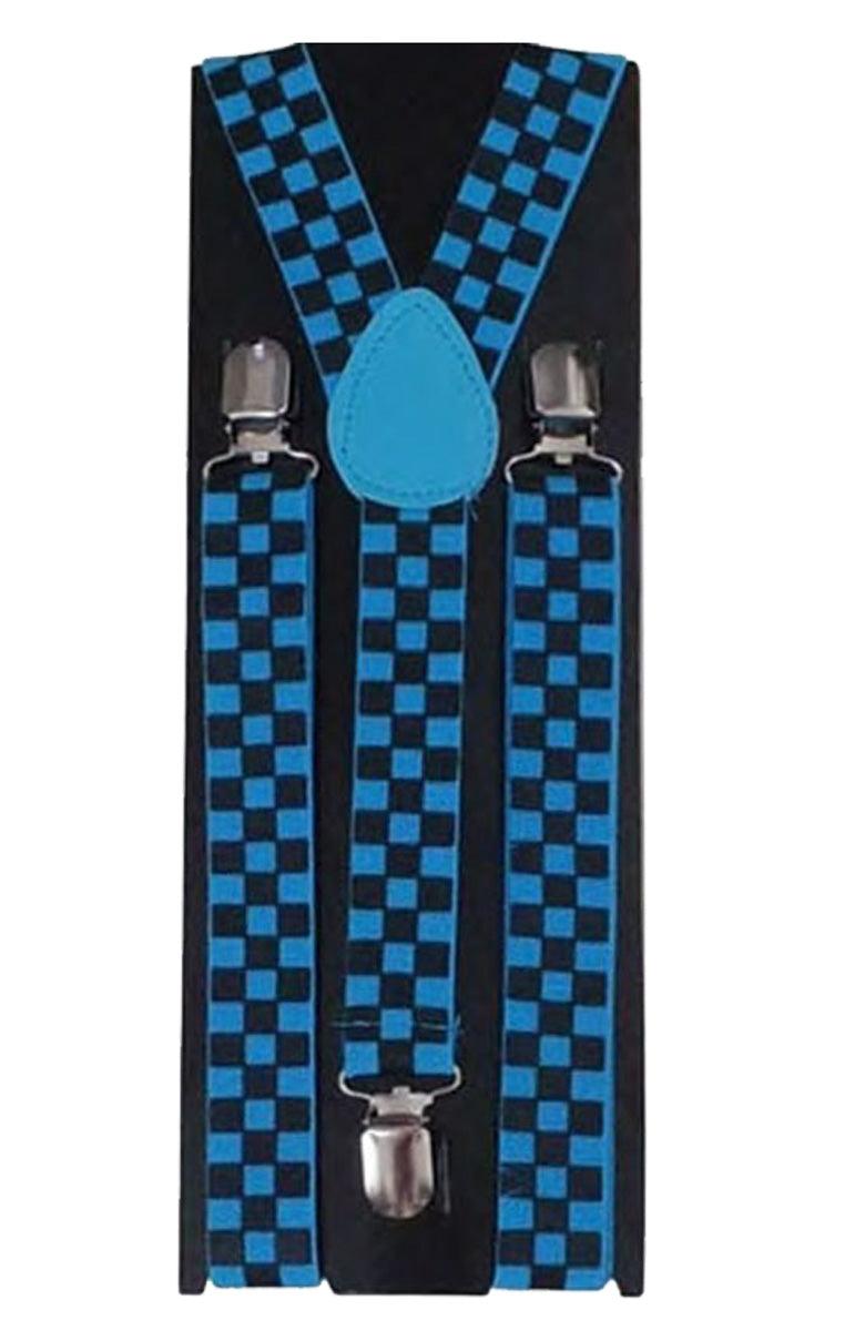 Police Checkered Printed Braces 2.5 Cm Adults Unisex Clip on Suspenders Fancy Dress Accessory