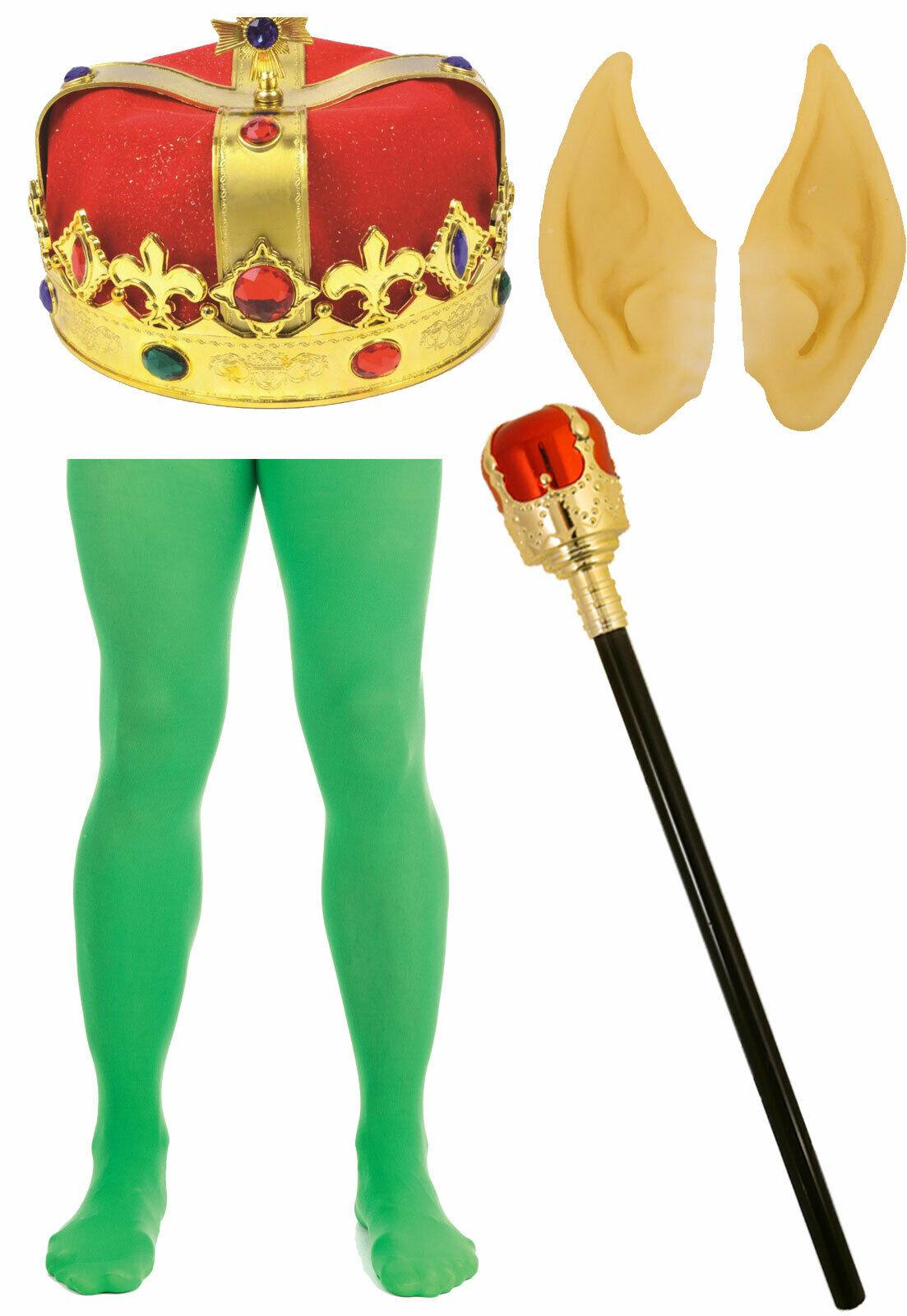 Red Velvet King Crown Royal Sceptre Ears Green Tights Christmas Fancy Dress