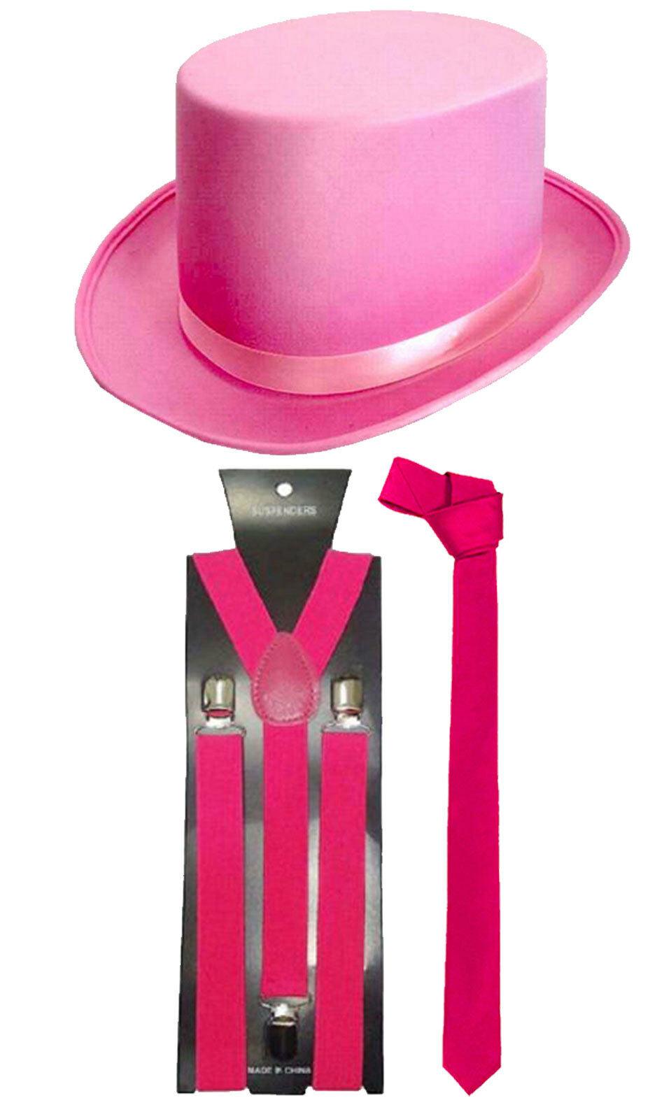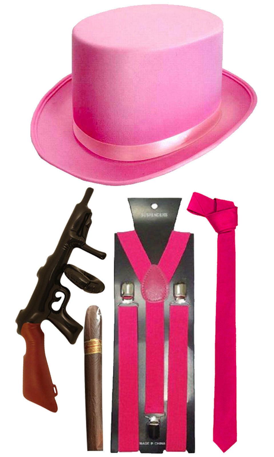 Satin Pink Hat Braces Tie Cigar Tommy gun Fancy Costume Accessories lot