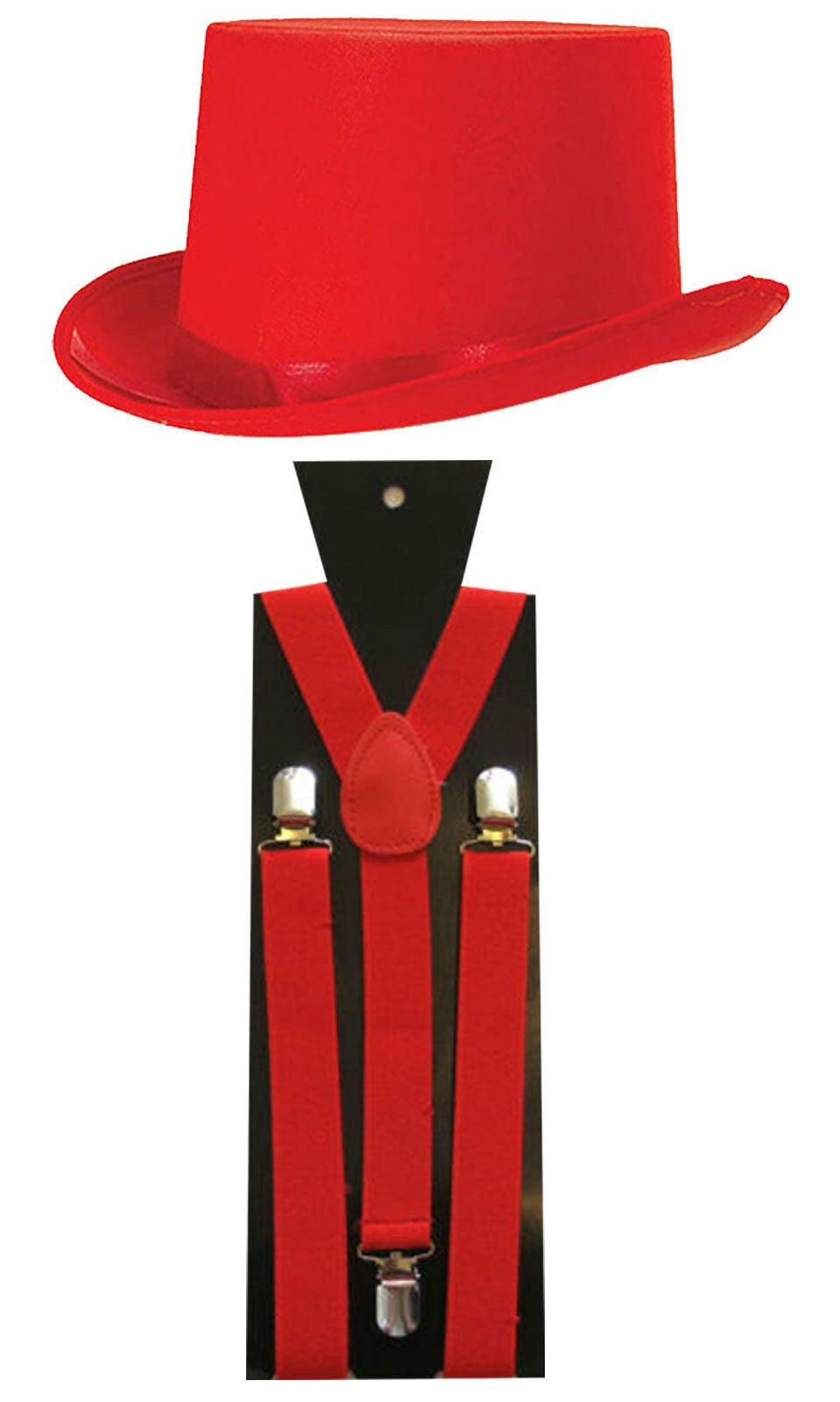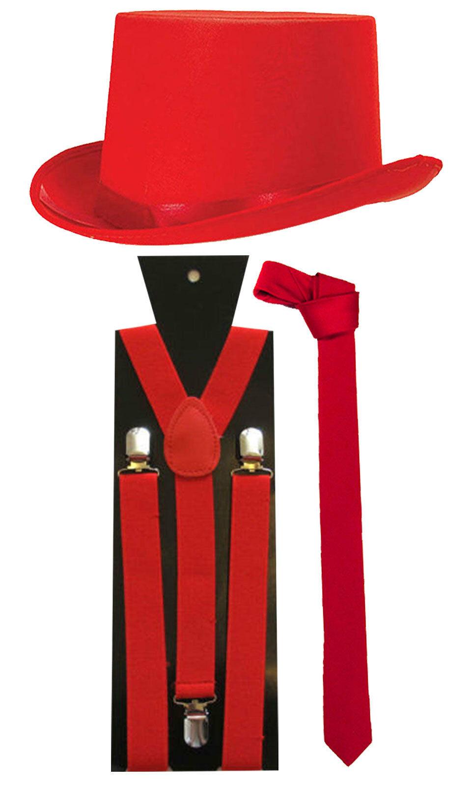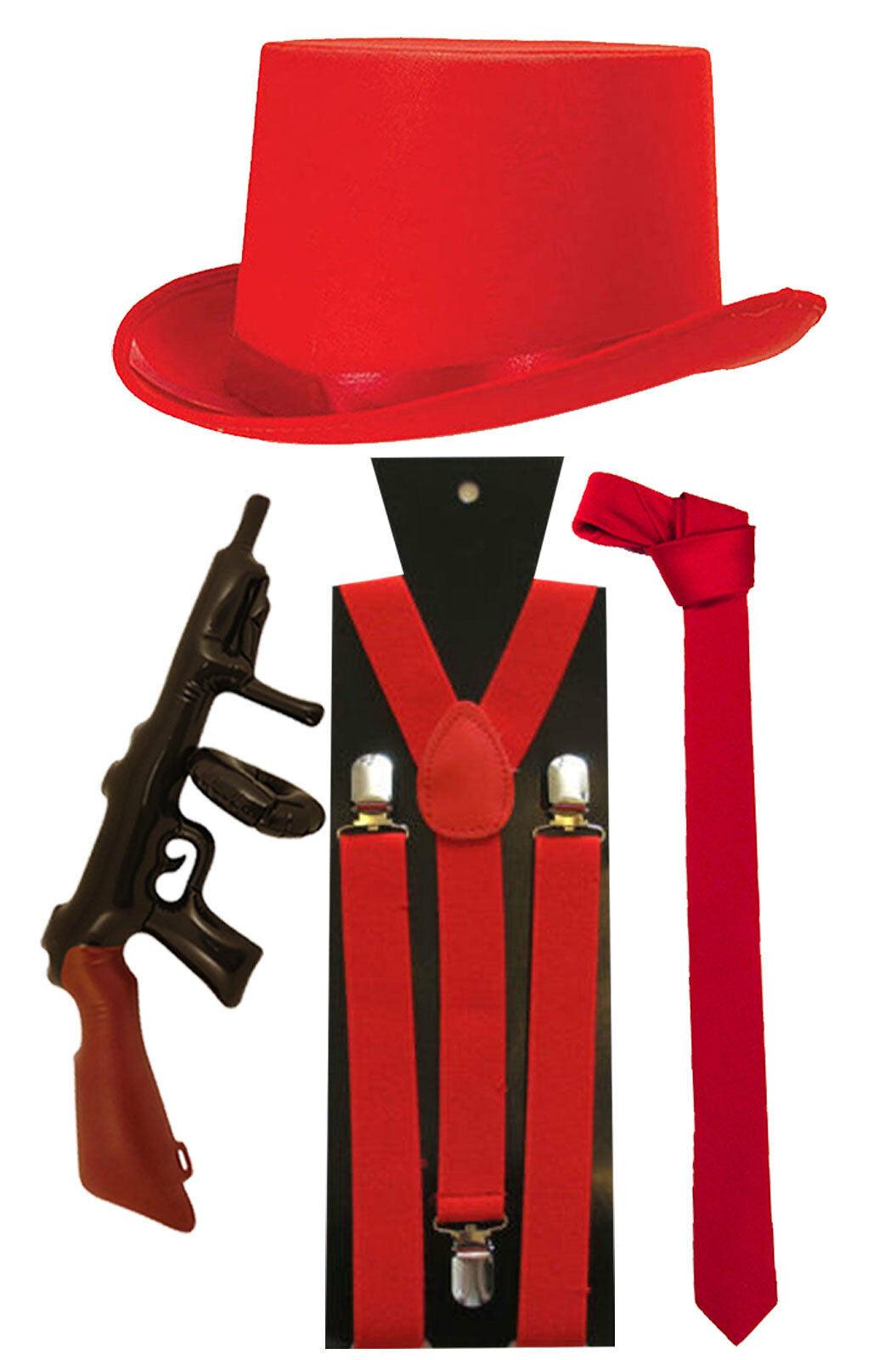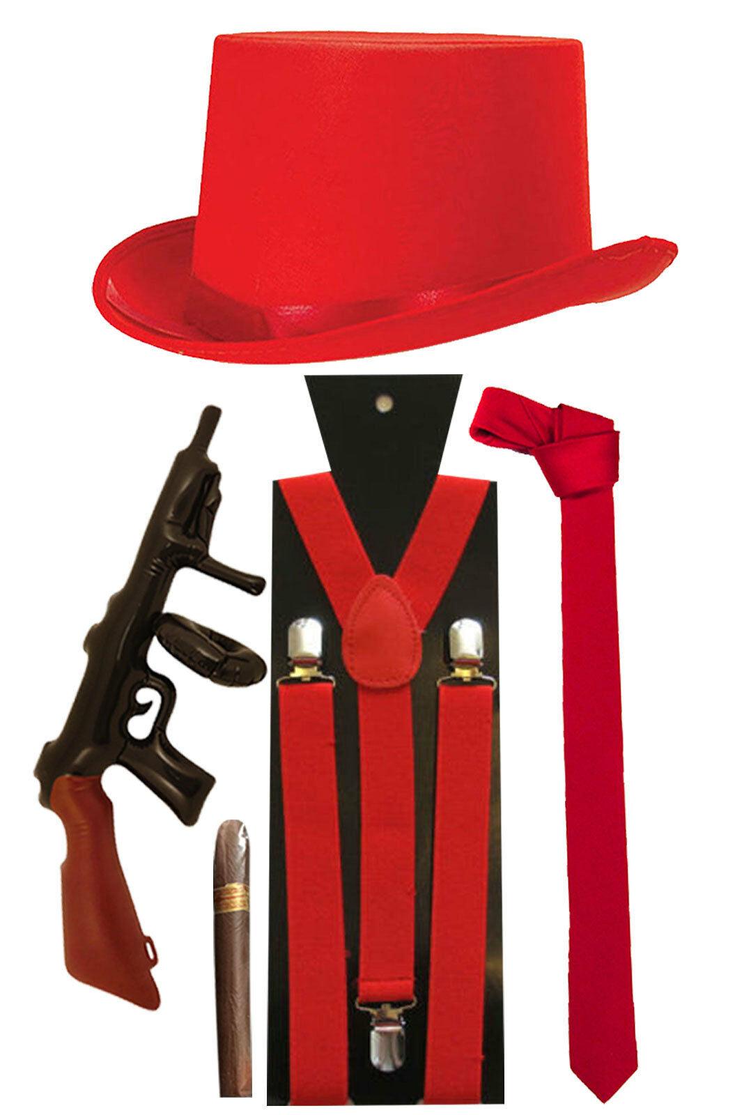 Satin Red Hat Braces Tie Cigar Tommy gun Fancy Costume Accessories lot