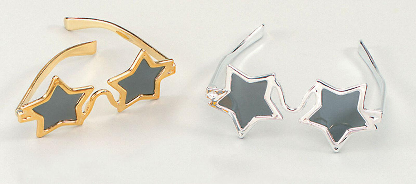 Star Glasses 70s 80s Elton John Rock Gold & Silver Fancy Dress Party Sunglasses