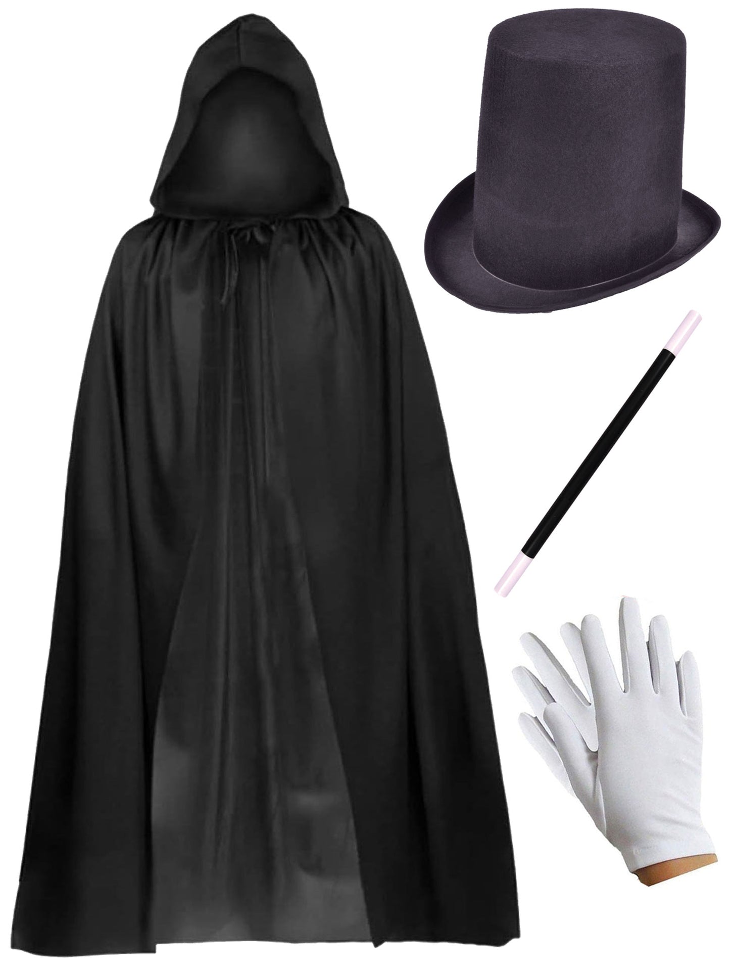 Stunning Stovepipe Top Hat with Black Cape, Magic Wand, and White Gloves - Complete Magician Costume Set for Unforgettable Performances