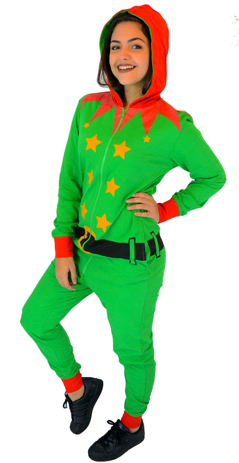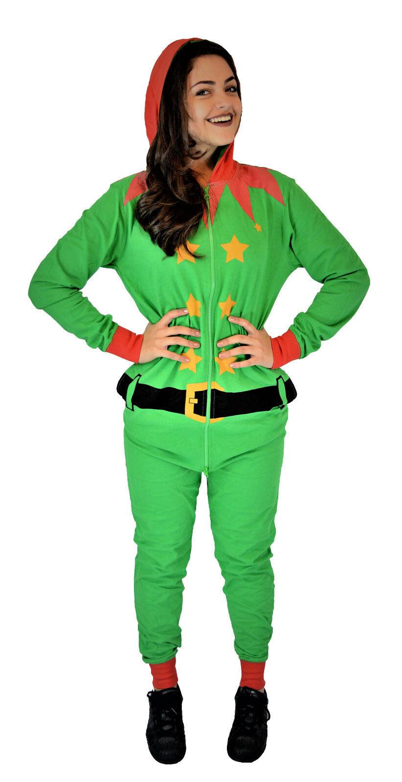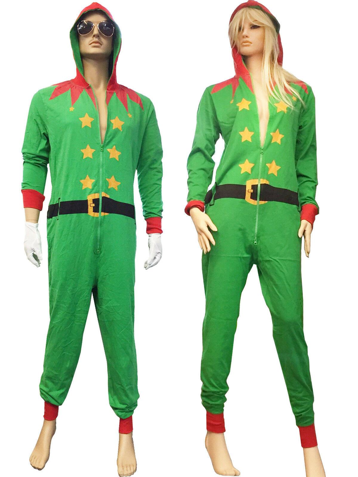 Unisex Christmas Green Elf Onesie Outfit Xmas Novelty Fancy Dress Costume