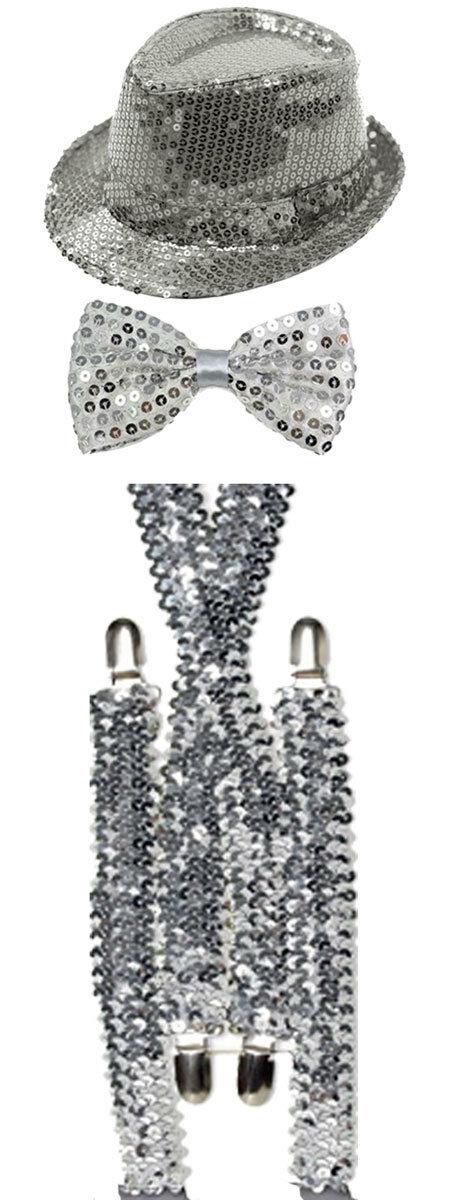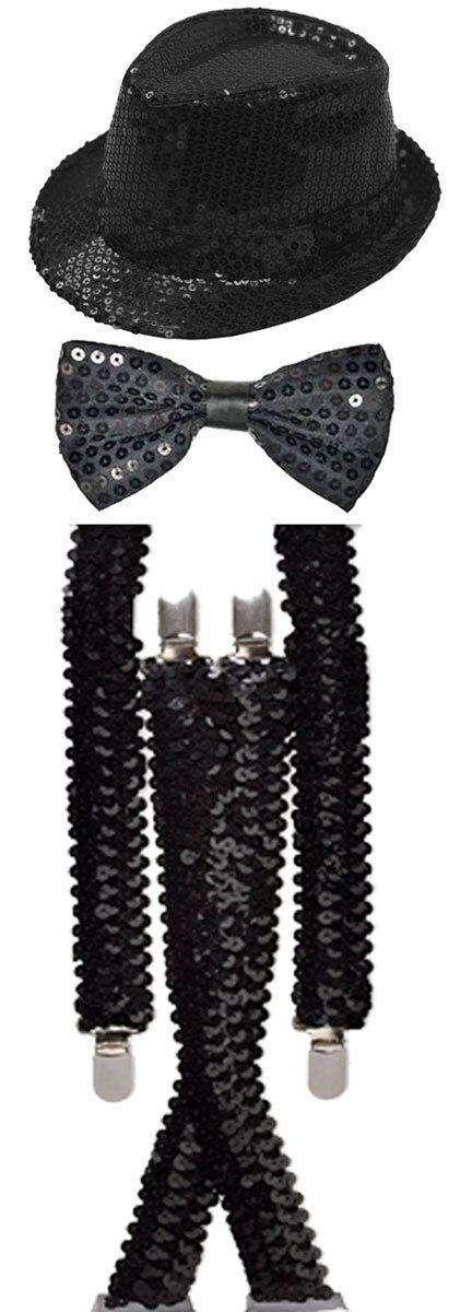 Unisex Sparkly Sequin Hat Braces Dicky Dickie Bow Tie Adults Fancy Dress Accessory Set