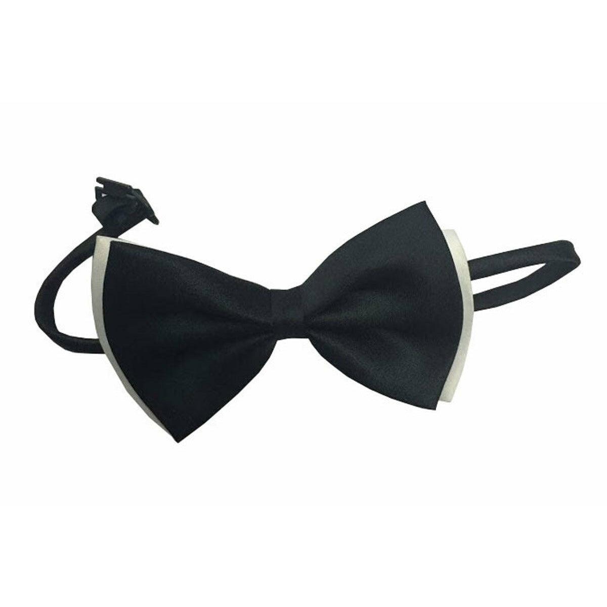 Mens Black & White Satin Pre-Tied Bow Tie Tuxedo Wedding Adjustable Tie
