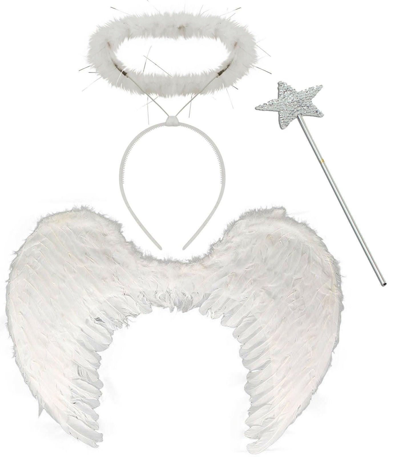 White Large Feather Wings, Sequin Wand, Halo - Angel Christmas Fairy Tale Set