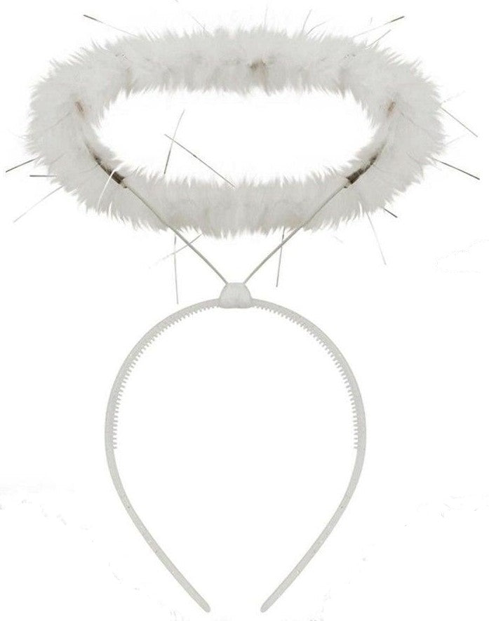 Fluffy Halo: A white fluffy halo to complete your angelic look with a touch of grace.