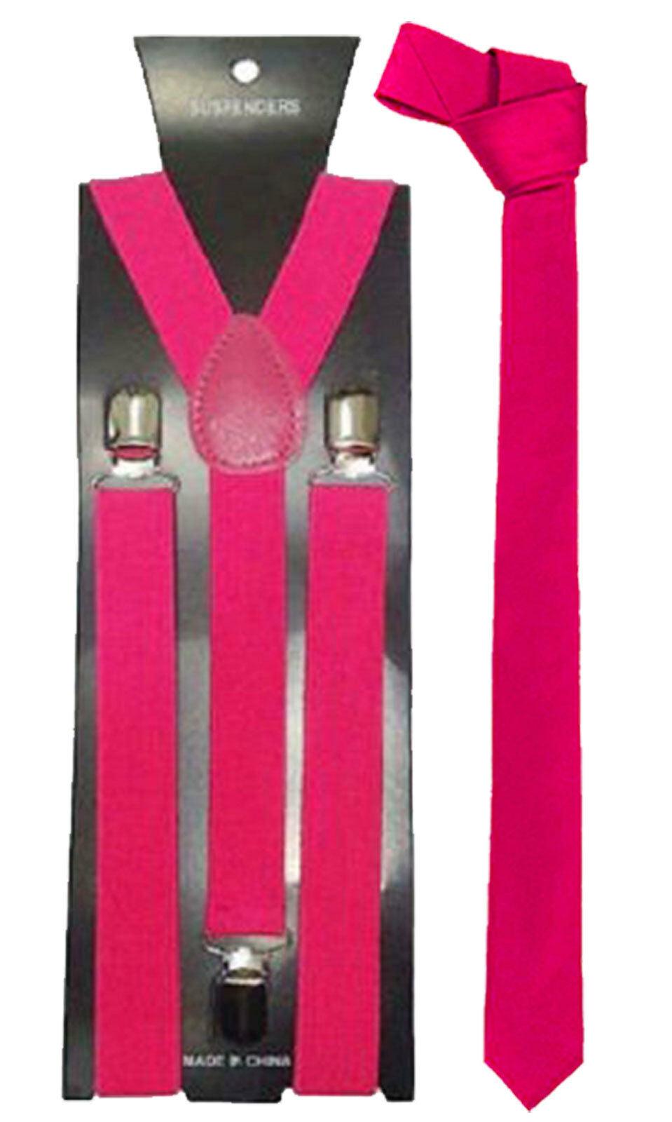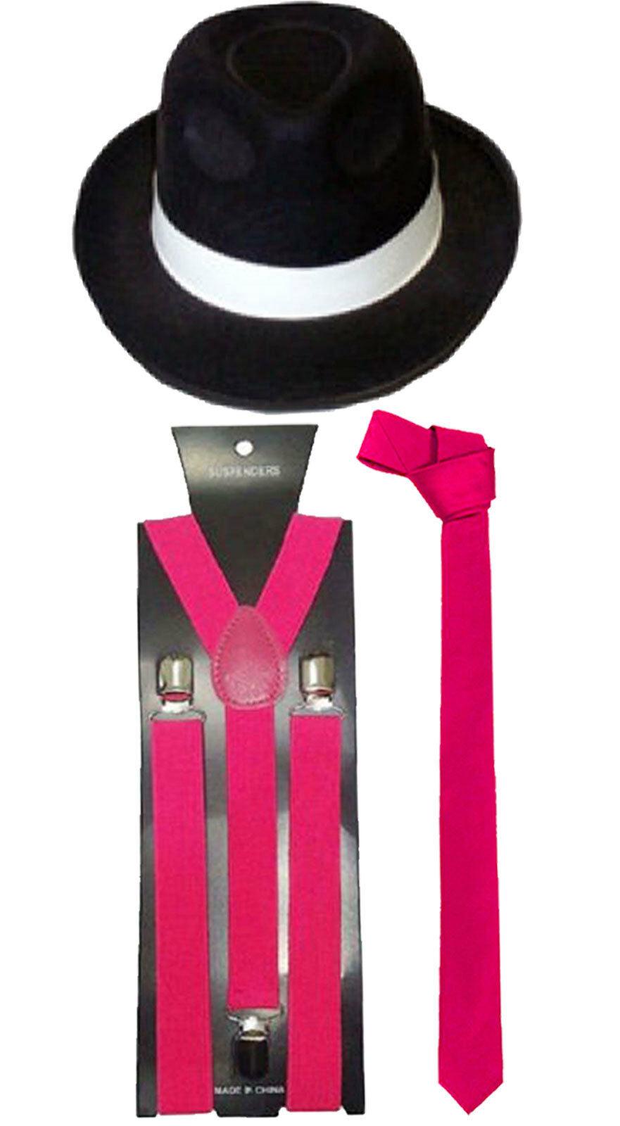 Women Black Gangster Hat Pink Braces Tie Fancy Dress Accessory
