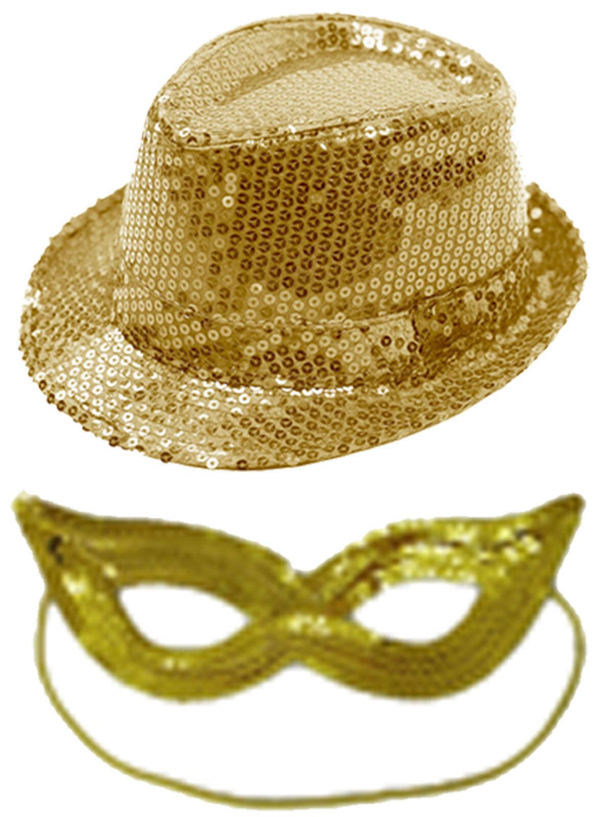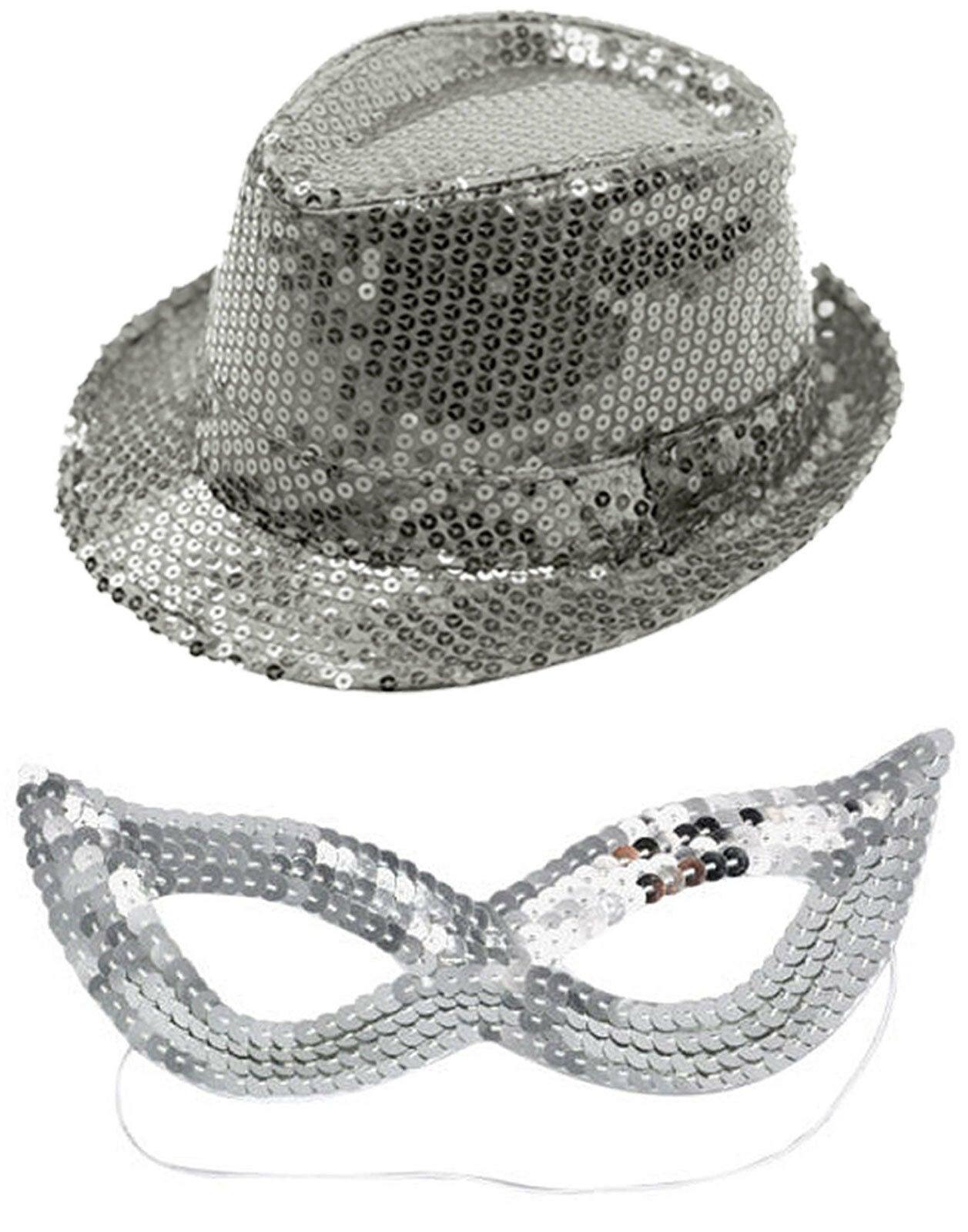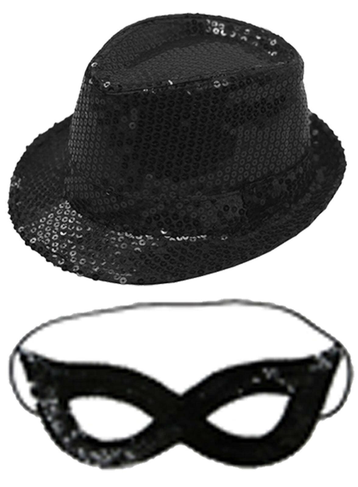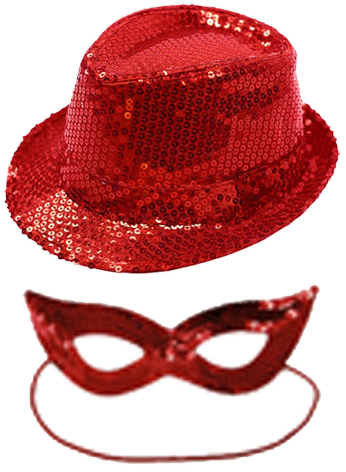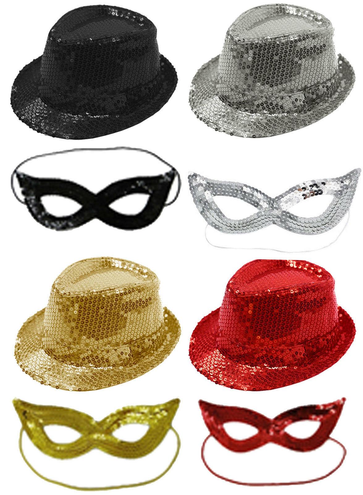 Women Masquerade Sequined Gangster Hat & Face Mask Shining Fancy Dress