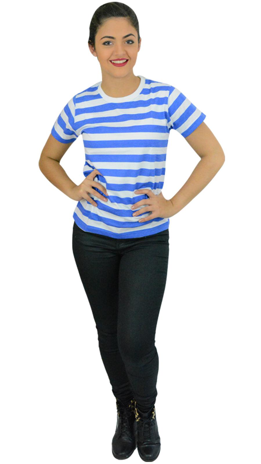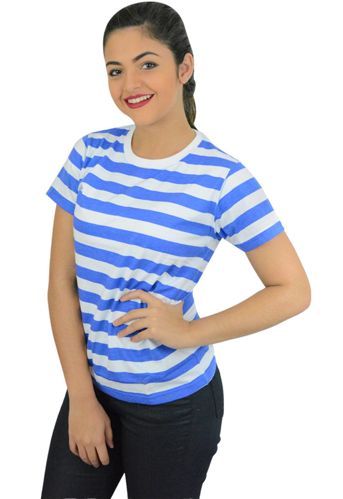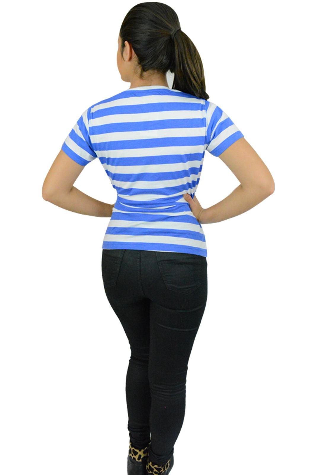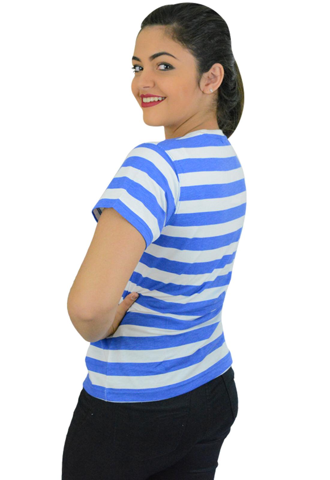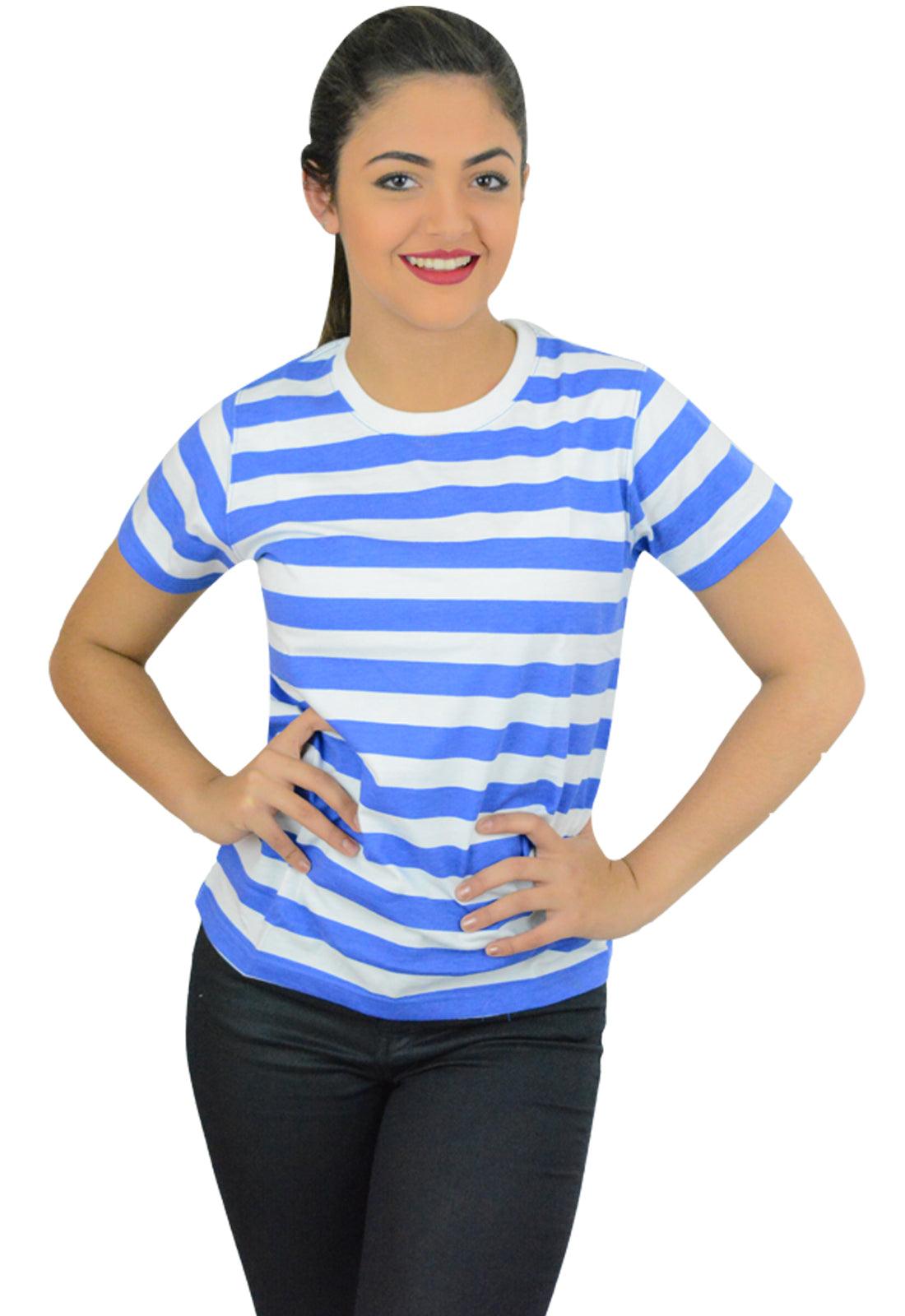 Women’s Blue &White Striped T-shirt Short Sleeves Regular Ladies Hen Night Tops