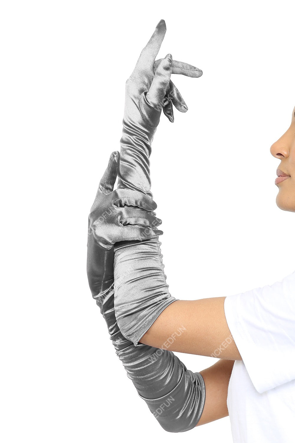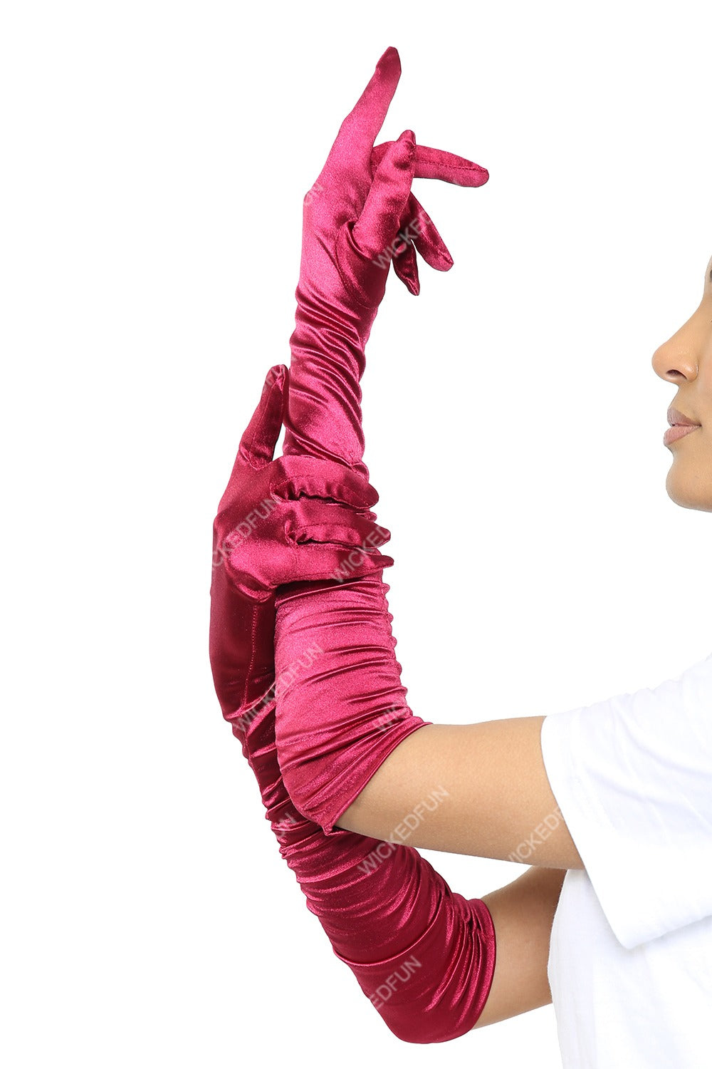 Elevate your formal ensemble with these stunning Women's Satin Ruched Top Long Gloves, designed for elegant evening wear.